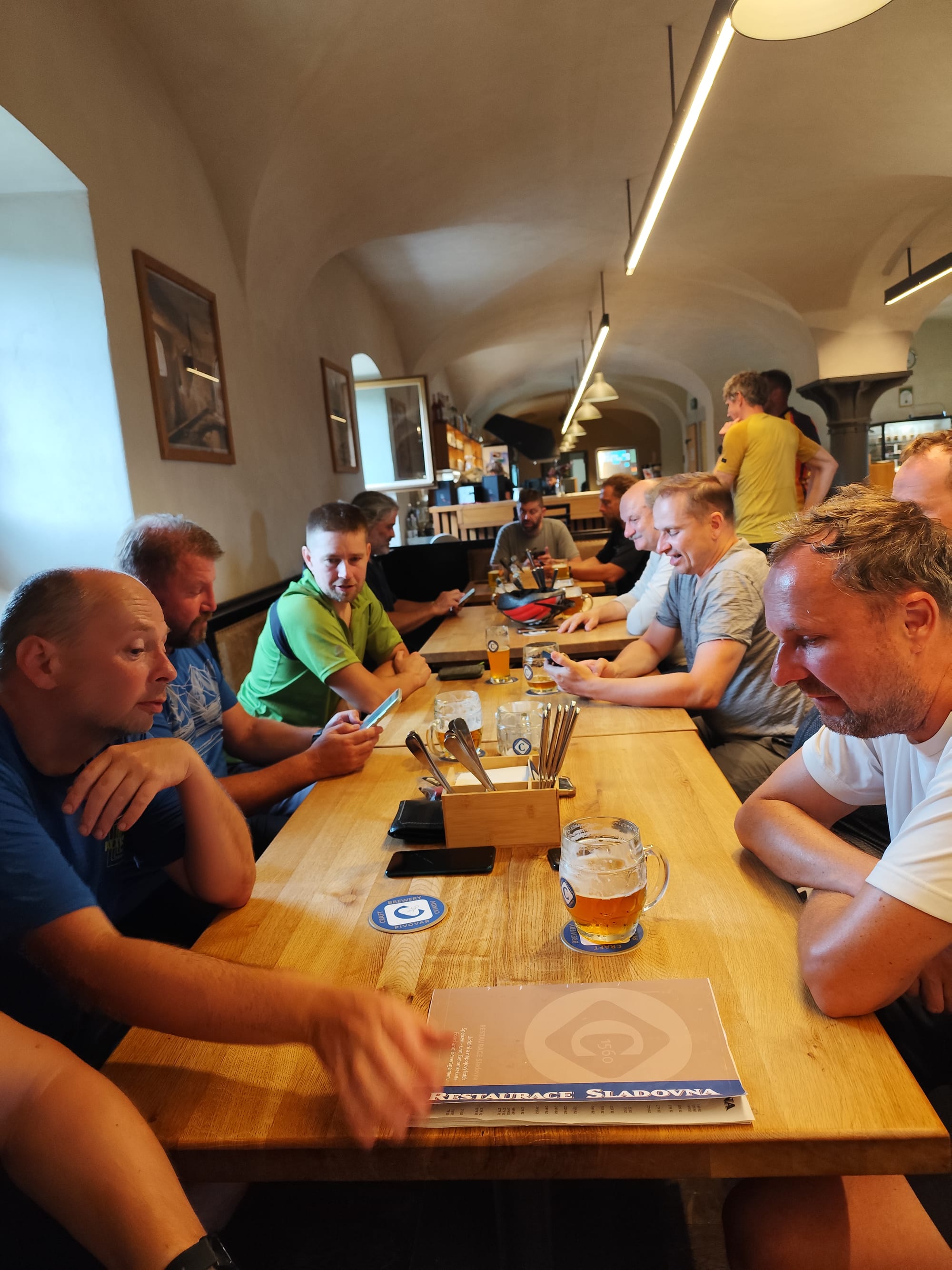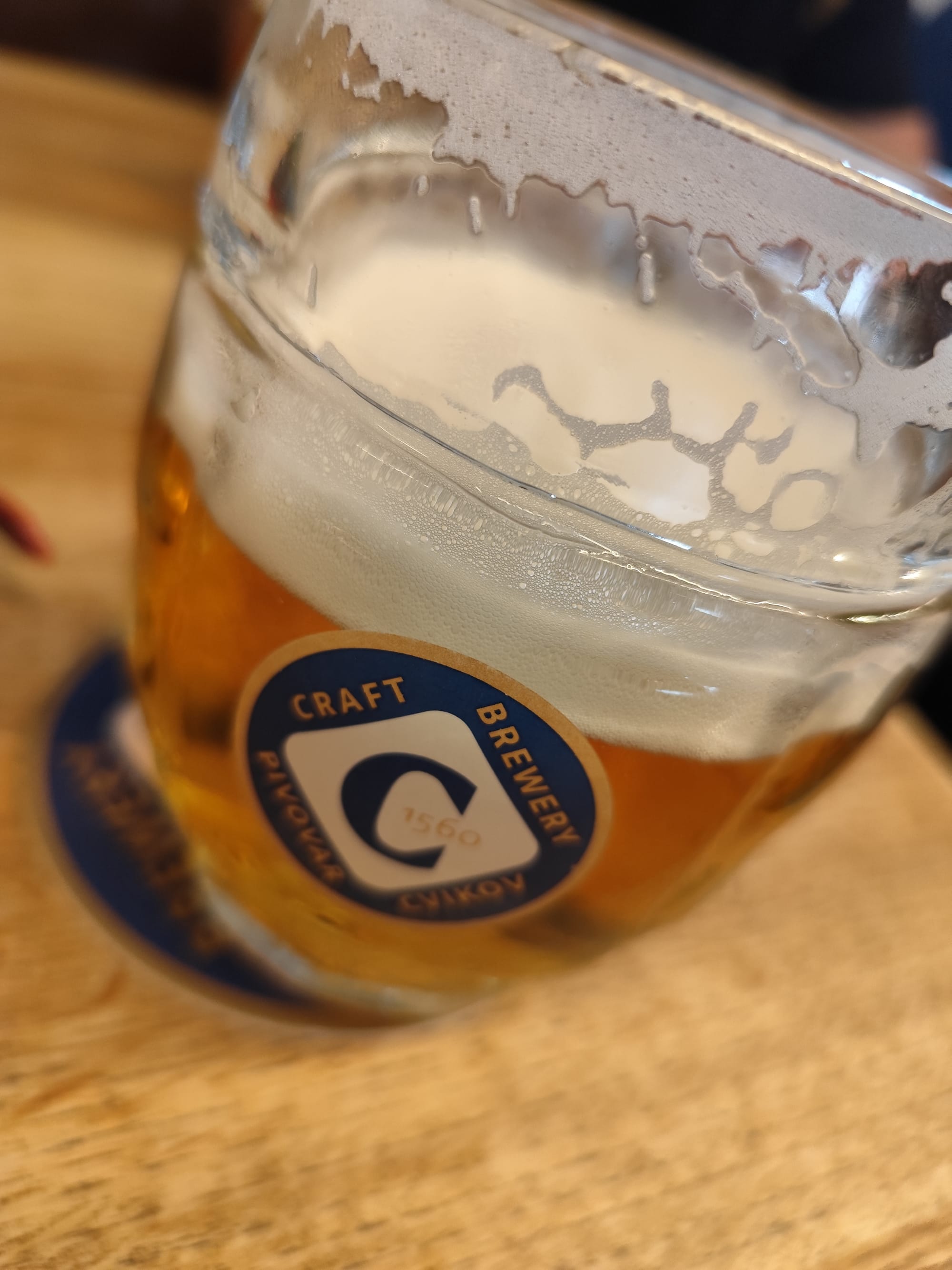 Pak jsme valili přes Kytlice – tam jsme dali polívku v hospodě, protože žaludky už nadávaly jak horník bez šichty. Dál do Cvikova, kde jsme si konečně hodili oběd v místním pivovaru – vaří tam božsky, klidně bych si tam nechal udělat i svatbu, kdybych nebyl takovej cynik.
