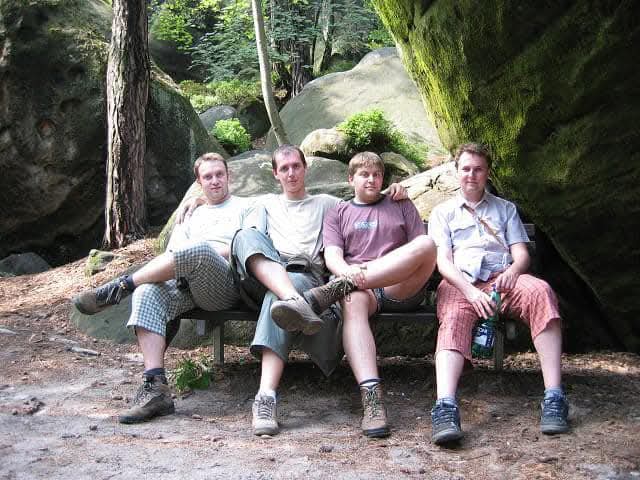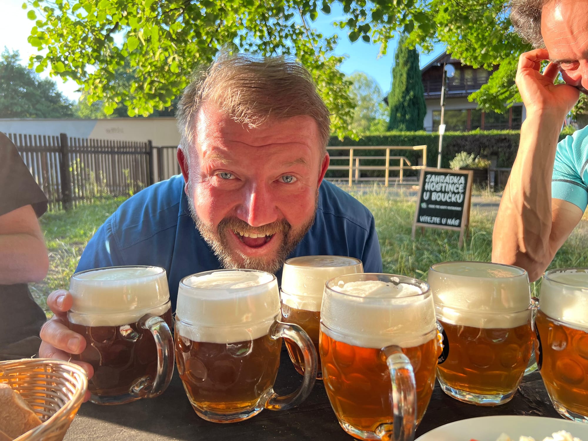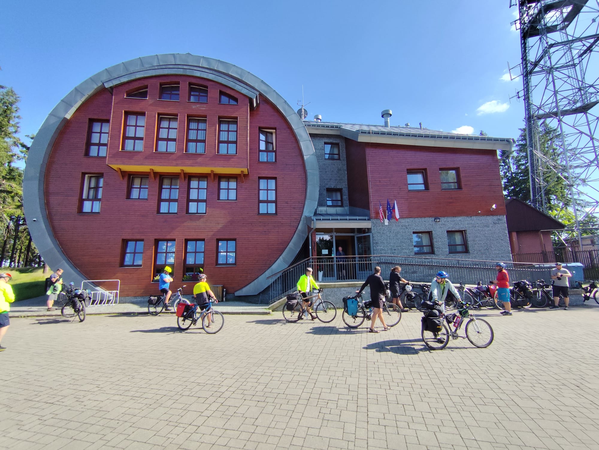 Jenomže to mělo háček – žrádlem přežraní jak prasata, a před náma největší krpál Dorotky – výšlap na Ještěd. Kdo to vymyslel, měl by dostat přes pysky. Ale jak zpívá Helenka – „vzhůru k výškám“, tak jsme ty pojebaný kola osedlali a vyrazili.