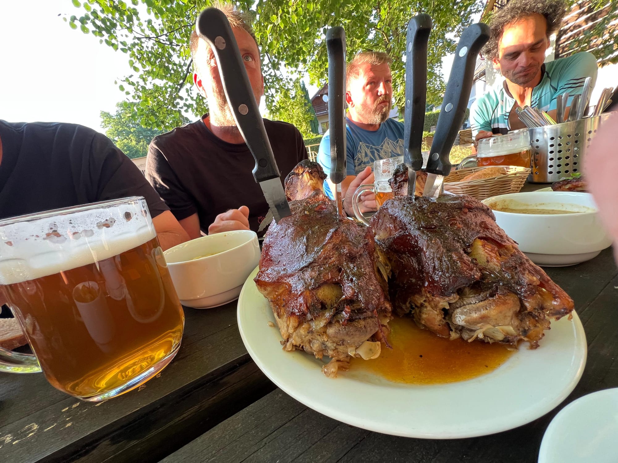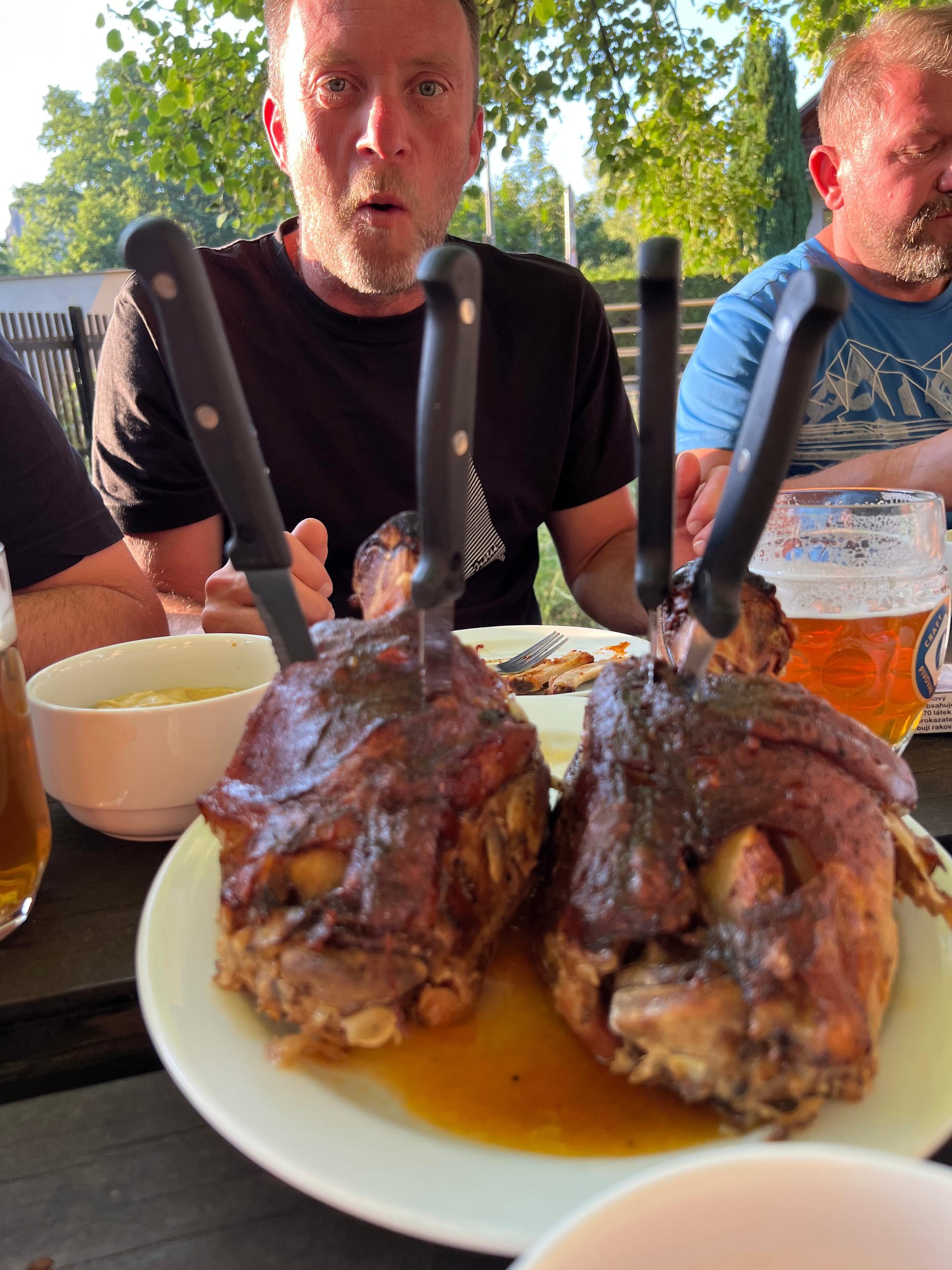 No ale žrádlo sežrat muselo, takže všichni jak bezdomovci po šichtě – předklon, žvýkat, pít, žvýkat, pít, přidat, pít, funět, snad nebudem blejt.
