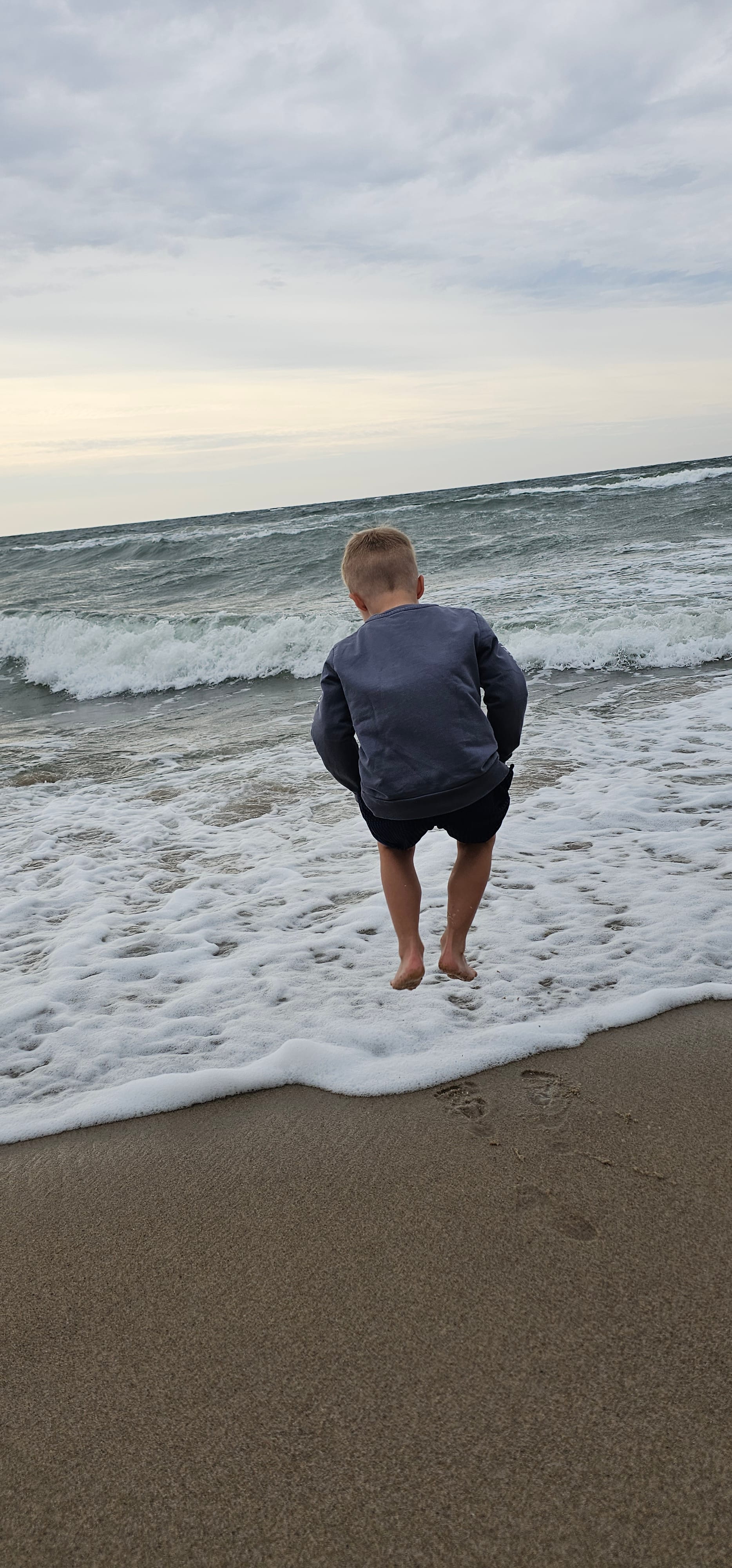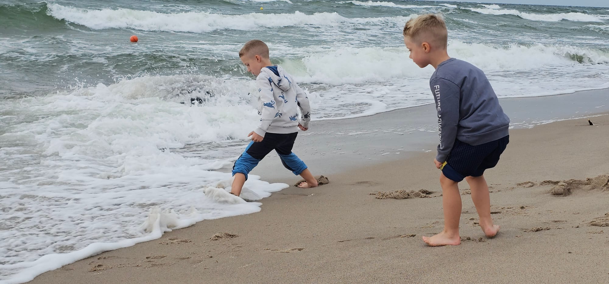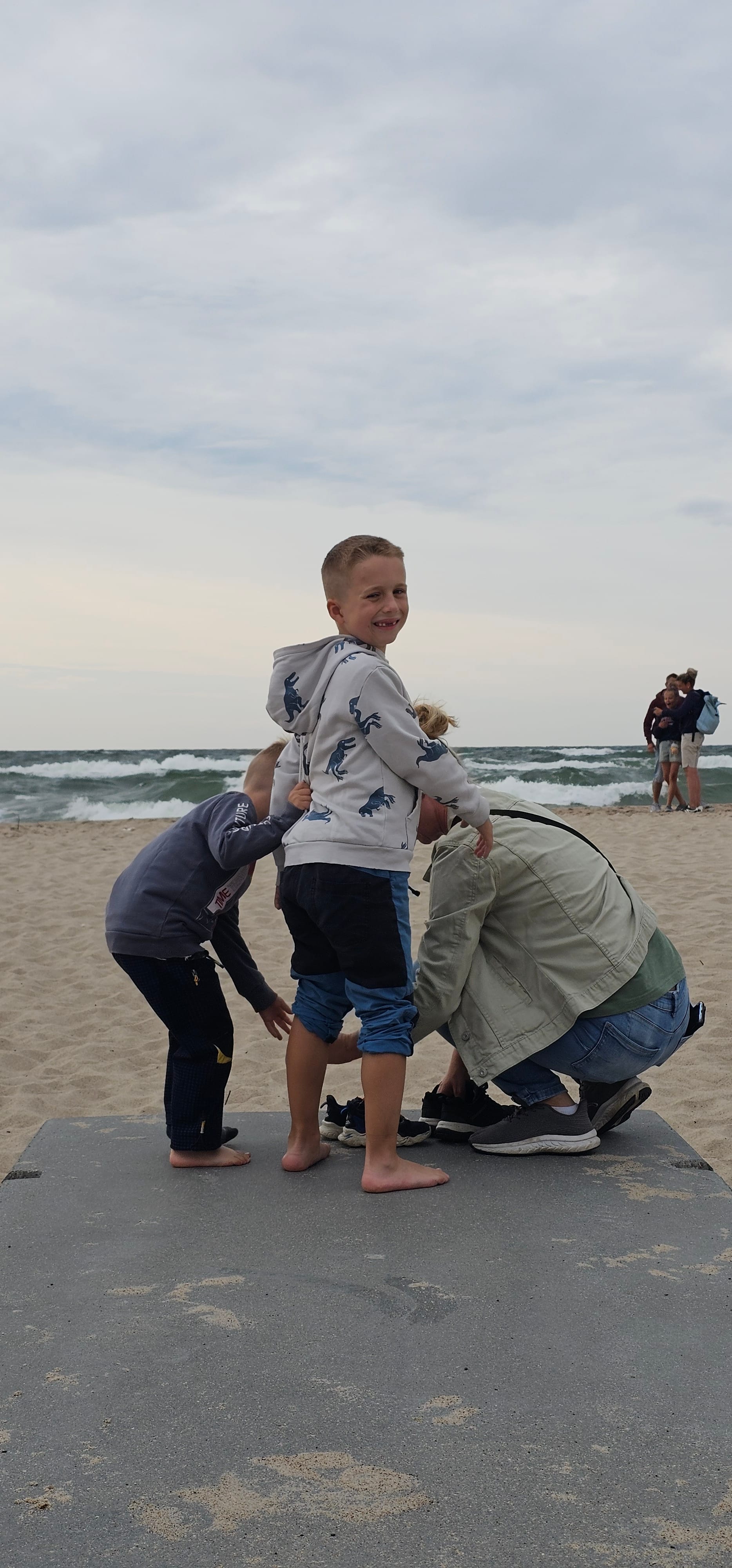 Jakmile kluci uviděli moře, spustili transformaci do módu „šílený tuleň“ a než jsme stihli říct „nelezte do vody, nemáte převlečení“, už byli mokří až za ušima. Počasí navíc nebylo úplně na koupání, takže jsme brzy vyrazili zpátky.