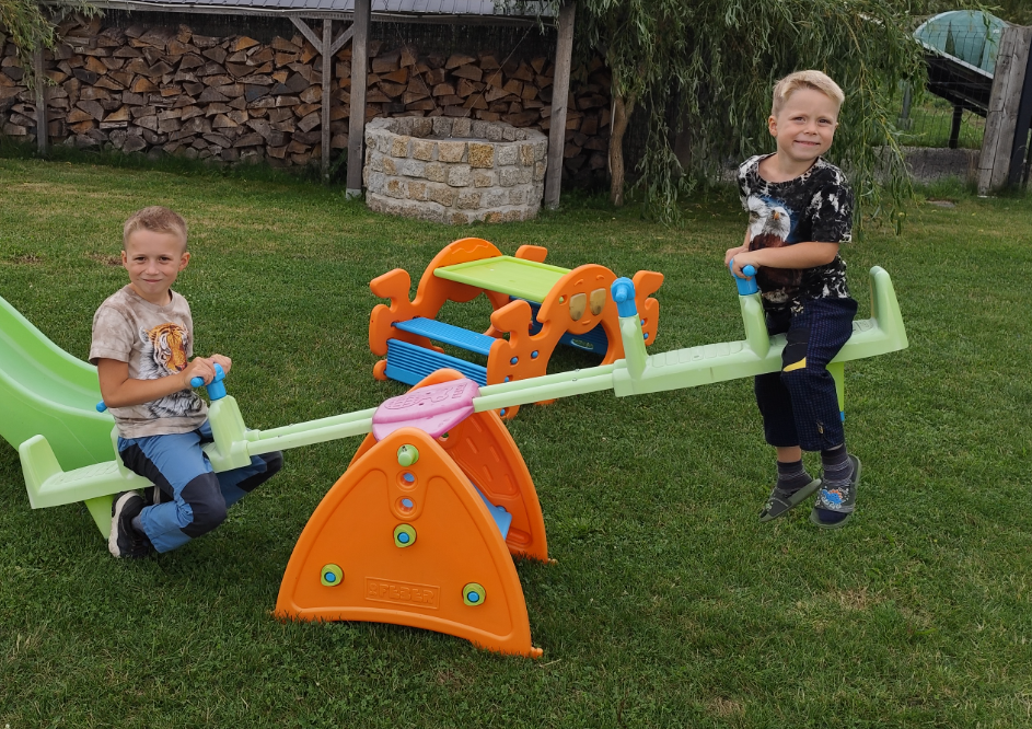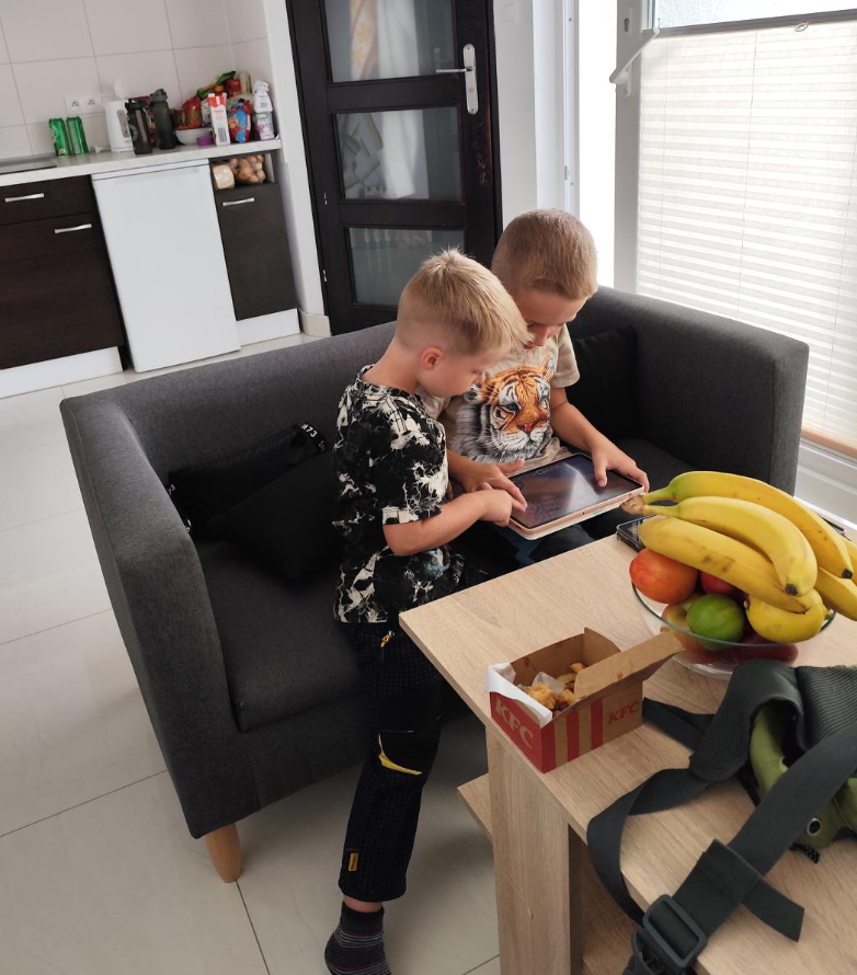 V 15:47 místního času jsme konečně zaparkovali u našeho cíle: DOMKI LETNISKOWE MOJITO. Zatímco jsme my ještě tahali kufry z auta, kluci už stihli oběhnout celý areál, otestovat všechny atrakce a nakonec zaparkovat u toho největšího zázraku dnešní doby – tabletu 😄